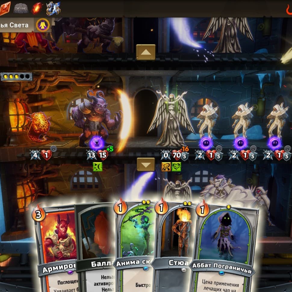 Ад замерз. Только вы можете защитить последний горящий кусочек Пекла от армий Рая и возродить былое пламя. За счет трех расположенных друг над другом полей, которые вам придется защищать, Monster Train привносит новый стратегический элемент в игры-«рогалики» с построением колод. Каждая игровая сессия не похожа не предыдущую Вы никогда не будете использовать одну и ту же колоду дважды!* более 220 карт* 5 кланов монстров, каждый из которых предполагает свой стиль игры* Каждый клан можно развивать вплоть до 10 уровня, чтобы получать новые карты* Для избранного героя клана доступны улучшения* 88 артефактов* Каждую карту можно улучшить дважды* Более 21 случайного события* 25 уровней Согласия (сложности) Посещайте места силы Чтобы отстоять Ад, вам придется стать могущественнее. Грамотно продумывайте свой маршрут, ведь разные локации дают различные преимущества. Улучшайте своего героя и карты, нанимайте могучих бойцов, копите пассивные бонусы и создавайте дубликаты карт в своей колоде. Продумывайте подходящую вам стратегию Вам доступны на выбор пять кланов, каждый из которых предлагает уникальный стиль игры. Выберите основной и дополнительный кланы, чтобы получить доступ к картам обоих. Во время заезда вы сможете усиливать свои карты, используя различные улучшения, чтобы открывать новые пути к победе. А прежде чем сразиться с финальным боссом, вы сможете создать дубликаты своих любимых карт, используя особые узловые станции на карте.